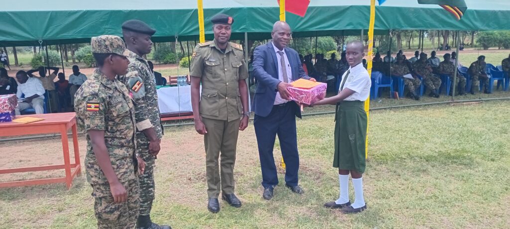 In attendance were Lt. Col. David Ahabwe Ntimba who represented the Division Commander, Achol-Pii, Major James Alomu, the Head Teacher Achol-Pii Army Secondary School, Pule Boniface, the Assistant RDC Pader,