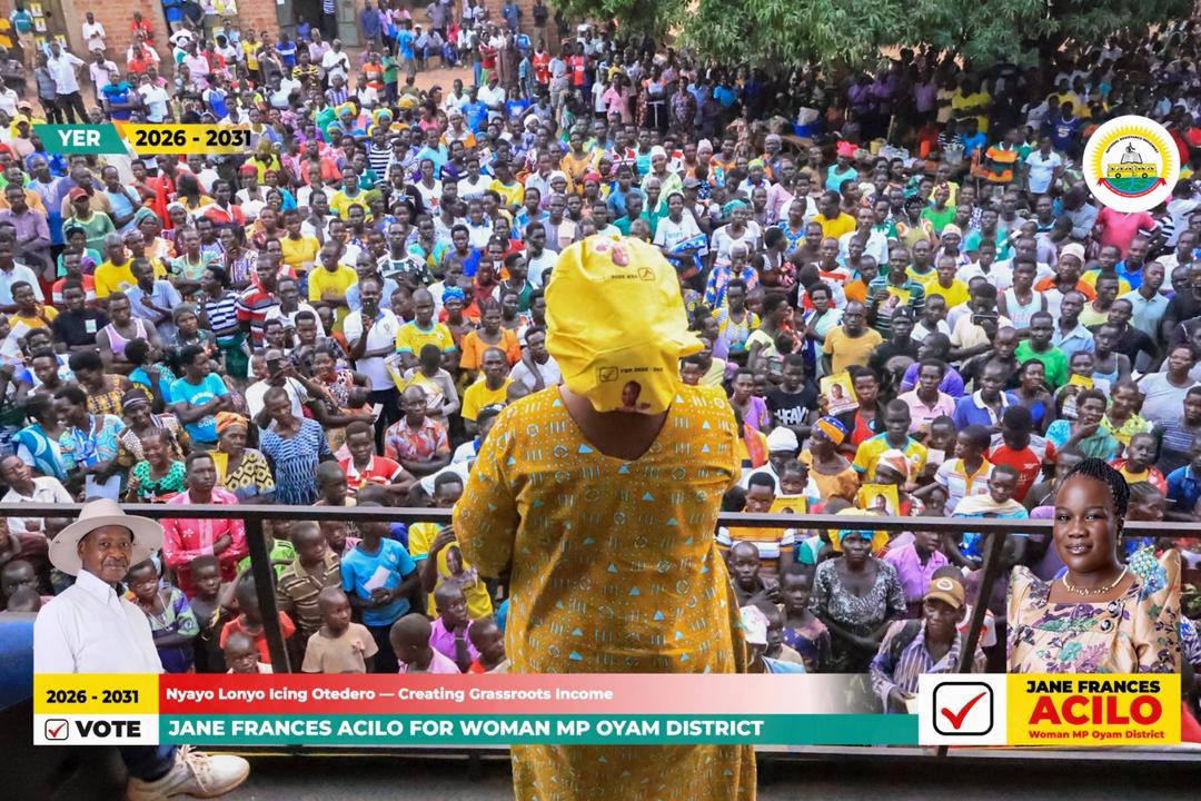 Teloloko Village, Ajul Parish — A massive crowd gathered at the village centre on Friday evening to welcome Jane Frances Acilo, the Oyam District Woman Member of Parliament (WMP) candidate, as she continued her campaign trail in her home area.