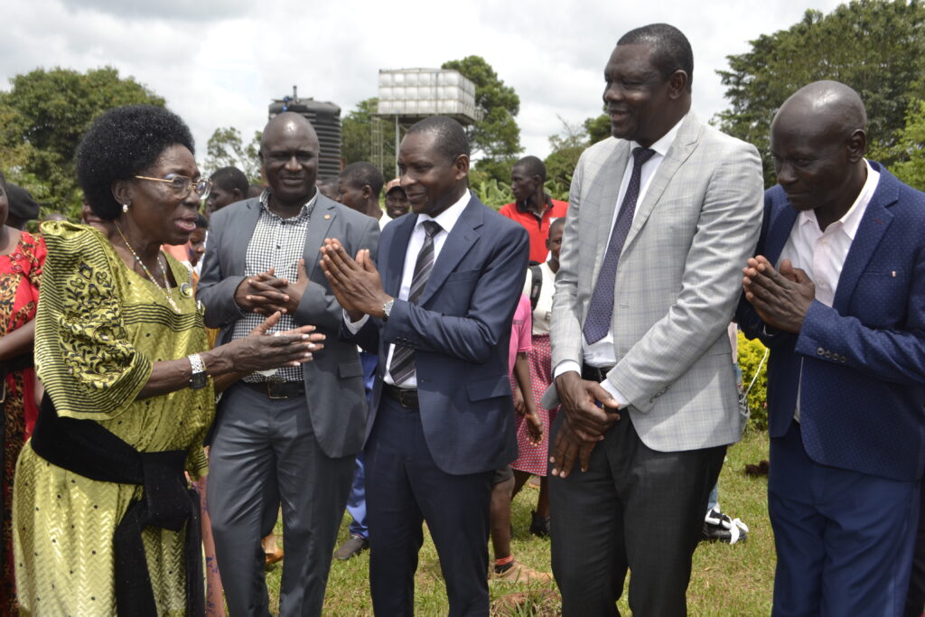 Kamuli district leaders led by CAO Ben Marley welcome 1st Deputy Prime minister Rebecca Kadaga to the district Women’s Day celebrations at Bulopa SS