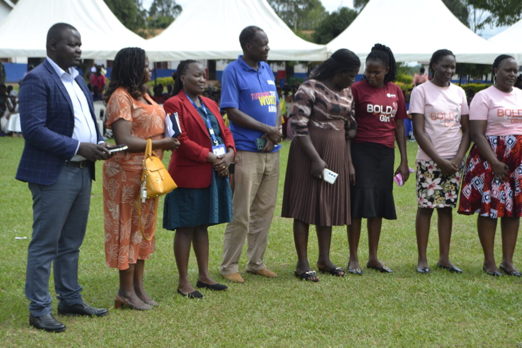 HOLD Uganda’s Executive Director, Mr. Charles Mudhumba introduces NGO partners working to promote Women and girls in Kamuli during the District Women’s Day celebrations at Bulopa SS