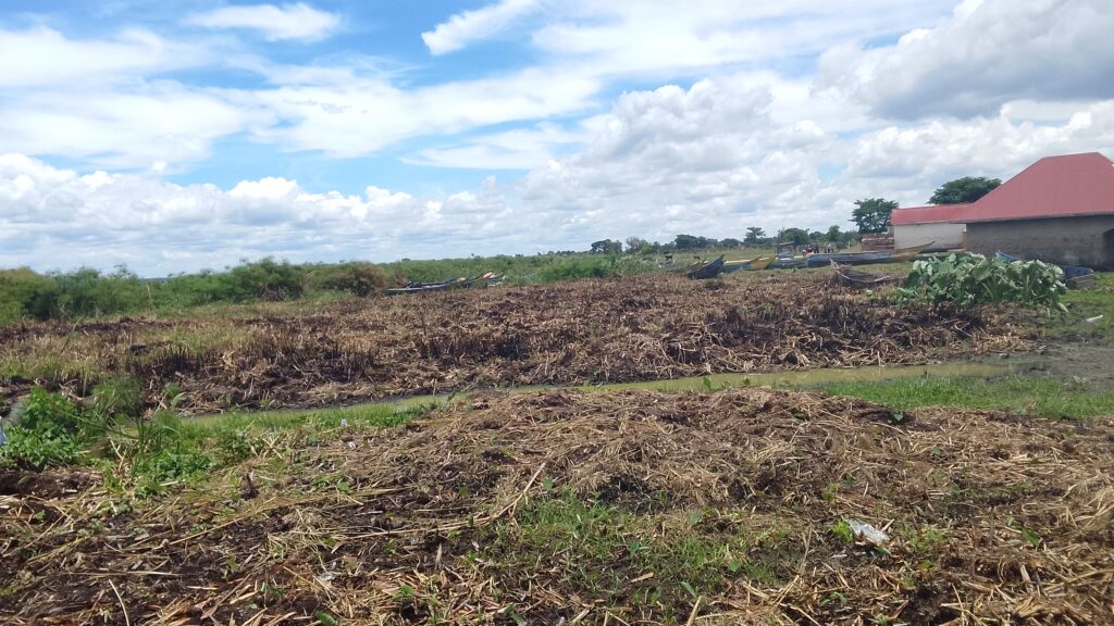 In buyende district in busoga subregion Eastern part of Uganda there some areas where signs of climate change are seen. Gonna the days during the months of February and April rainfall could be experienced country wide but now it’s yet another story from some parts of the country.a case study is in eastern region especially in Busoga subregion where rainfall is expected between Feb and April but now at the sures of lake kyoga most of the areas are dry.At Kakooge landing the community says rainfall was last experienced in December last year and only feel coldness and wind blowing . According to the chairman f the area muzamiri mugabi the community have destroyed most of the green cover for both settlement and farming this comes when they government restricted fishing and they resorted to farming which led to the destruction of the green cover.