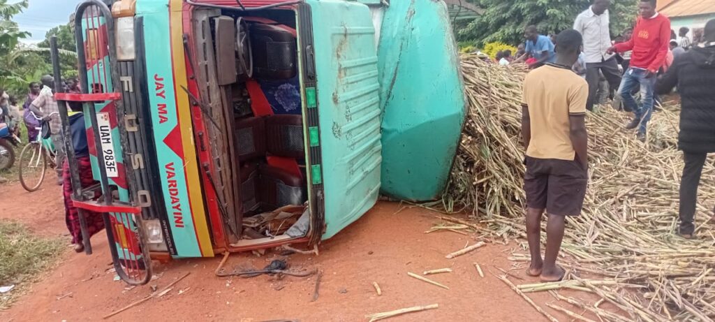 Kamuli District registered a fatal accident in which four people have died following a road accident involving a sugar cane laden Fuso Fighter truck and a motorcycle along the Kamuli – Namasagali Road in Bulunda village. April 10, 2026 The deceased have been identified as:1. Mudumba Grace, adult male, resident of Naibowa, Butansi, Kamuli District (rider)2. Nanzala Lydia, 38, female, resident of Naibowa, Butansi, Kamuli District3. Makayi Stephen, 40, male, resident of Busiba Cell, Southern Division, Kamuli Municipality4. Balinaine Charles, 42, male, resident of Busiba Cell, Kamuli MunicipalityAll four victims died instantly at the scene.According to preliminary findings the crash occurred at approximately 5:50 PM on April 10, 2026. The Fuso Fighter (registration UAM 983F), loaded with sugar cane, and the Bajaj Boxer motorcycle (registration UDL 411N) were both traveling in the same direction from Namasagali toward Kamuli.Upon reaching Bulunda Village, a Sinotruck lorry approached from the opposite direction. In an attempt to avoid a collision, the driver of the Fuso swerved sharply to the right, lost control of the vehicle, and caused the truck to overturn. The falling vehicle and its sugarcane cargo landed directly on the motorcycle rider and his passengers, burying them under the heavy load. All four died on the spot. The driver of the Fuso truck fled and remains at large.Police strongly caution all drivers, especially those operating heavy goods vehicles (HGVs), against dangerous evasive maneuvers such as sudden swerving, which can lead to loss of control, overturning, and fatal consequences for other road users. Drivers are advised to instead reduce speed gradually, brake safely when possible, and avoid reckless overtaking or abrupt directional changes, particularly when approaching oncoming vehicles on narrow roads. Motorcyclists and passengers are also reminded to maintain a safe distance from heavy vehicles and to remain vigilant at all times.Inquiries are ongoing. Police are appealing to anyone with information that could lead to the arrest of the fleeing Fuso driver to come forward immediately to Kamuli CPS or the nearest police station.