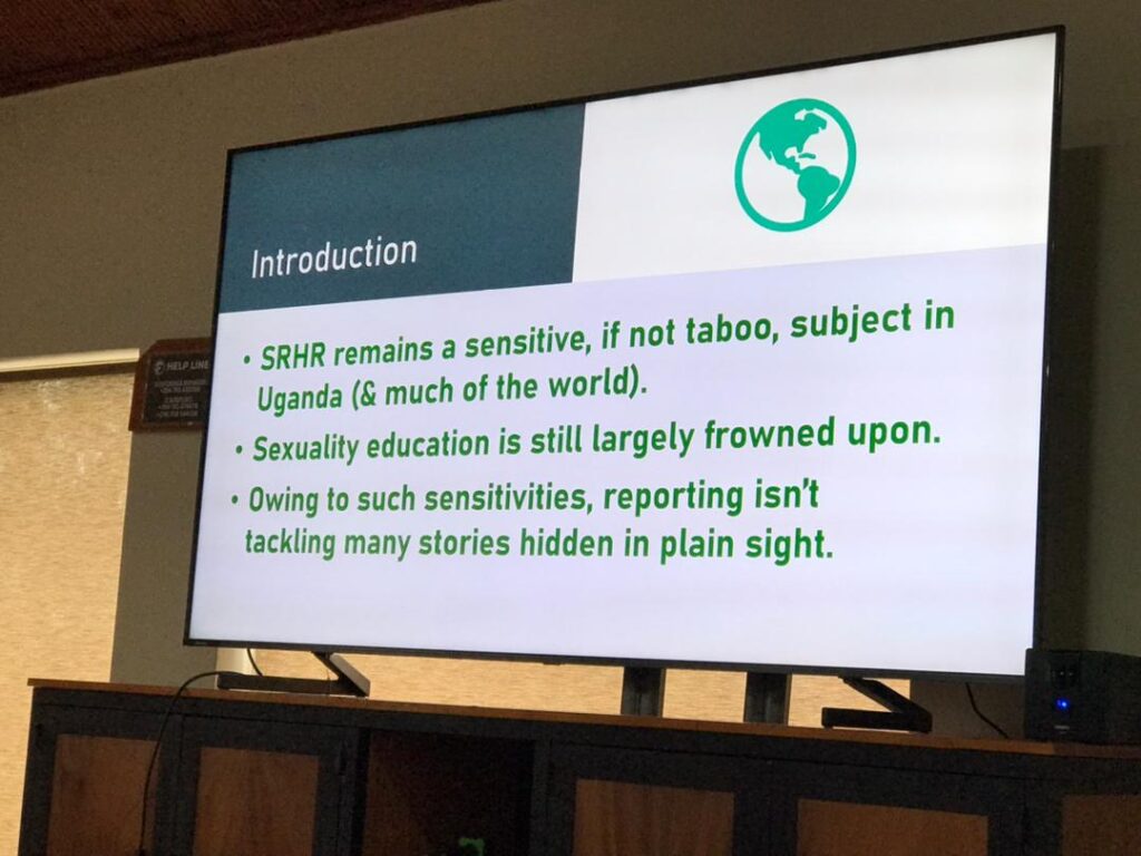 Oluka delved into the critical interplay between policies, frameworks, and societal patterns, urging participants to “dig deeper into policies and frameworks to tell stories that are detailed when it comes to Sexual Reproductive Health Reporting.”