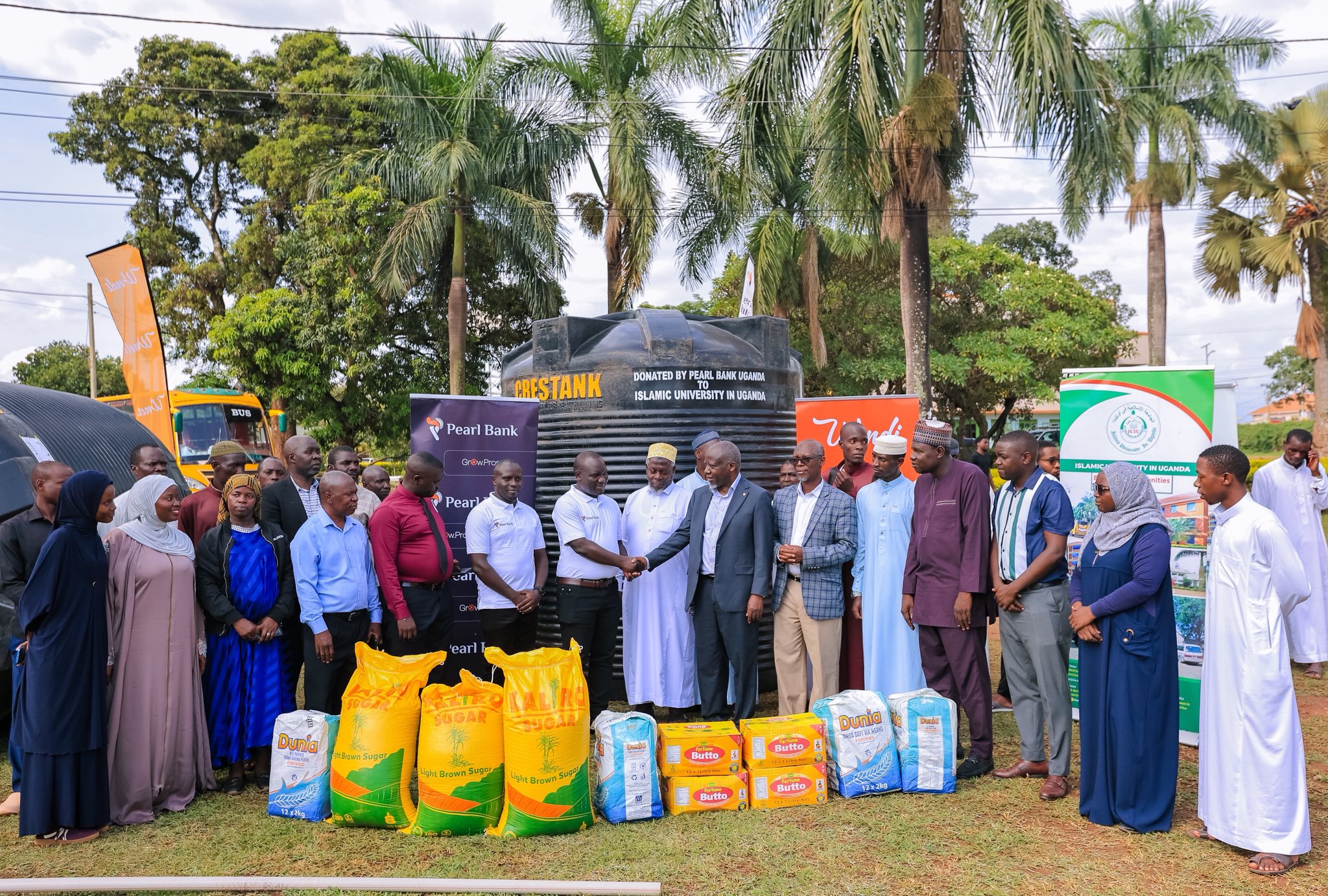 Pearl Bank Uganda has donated water tanks and assorted food items to the Islamic University in Uganda (IUIU) to support students observing the fasting period of Ramadan and to mark International Women’s Day.